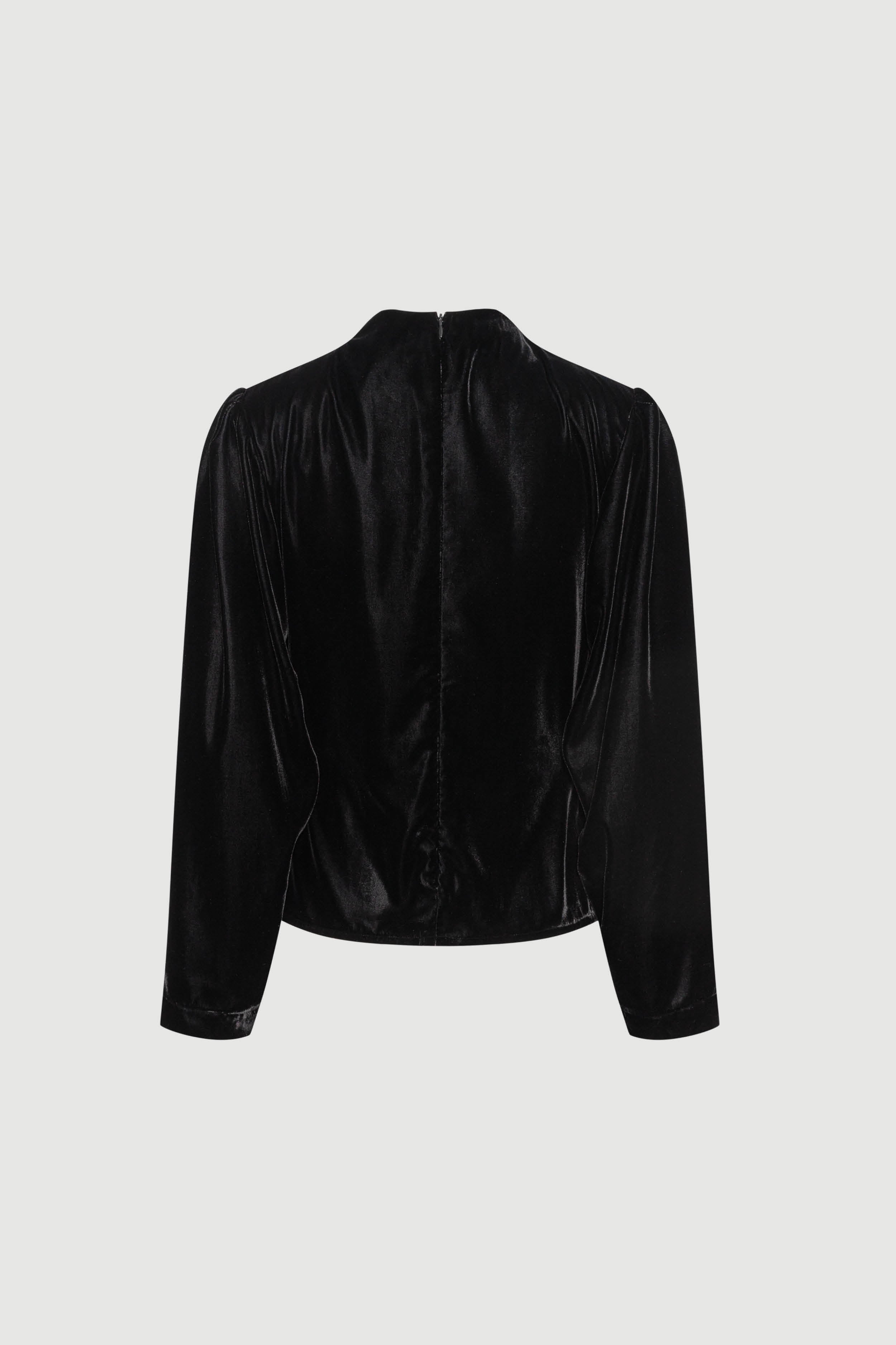 The Jet top is back in a new fabric, making it the ultimate party piece. Crafted from 100% viscose velvet, this bestselling style features puffy shoulders with bold shoulder pads, a mock neck, and a flattering gathered design. True to size and available in classic black.