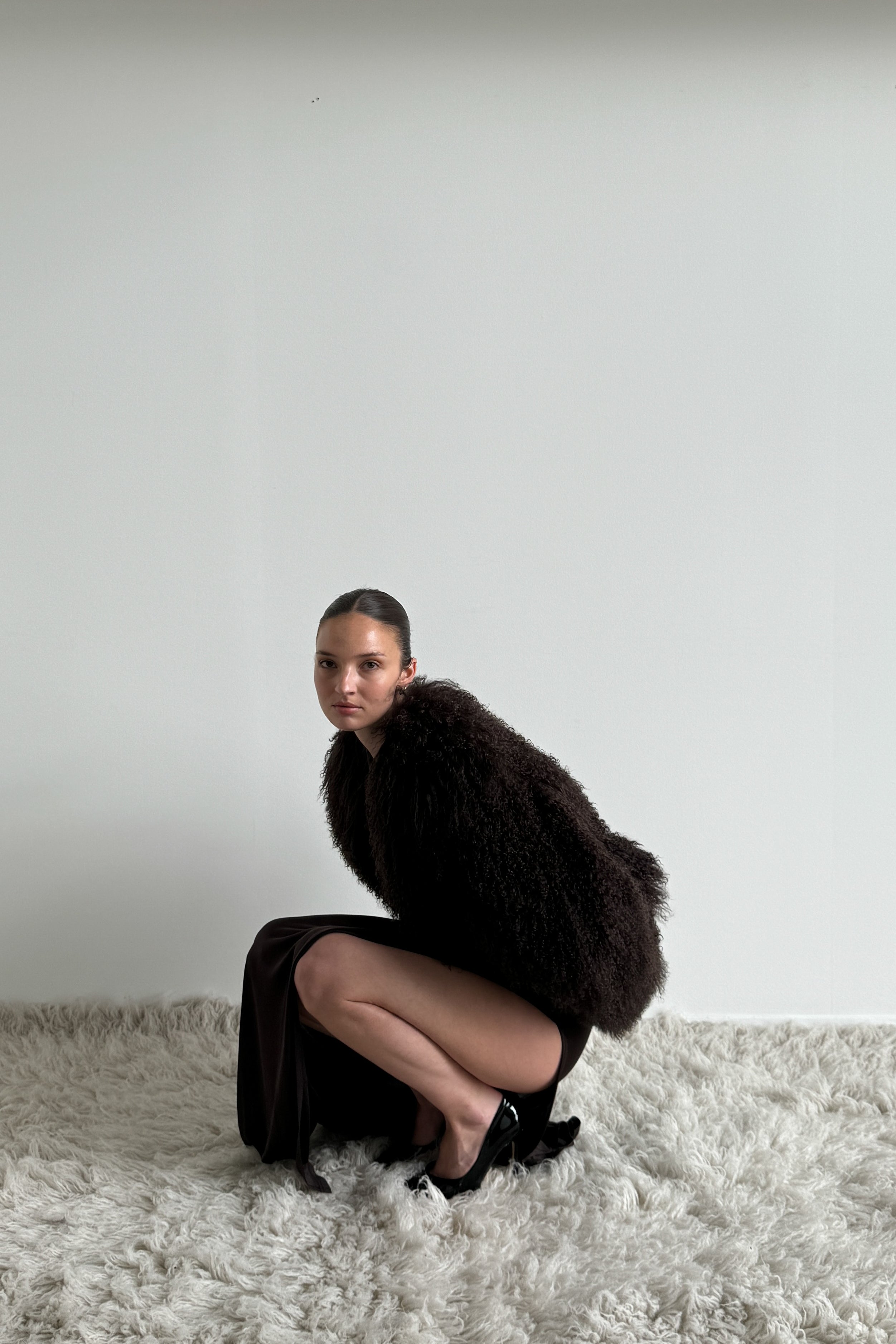 The All Night jacket short is here! After the success of its midi-length version, this mini jacket is a must-have for your wardrobe. Perfect for layering over a party dress or wearing with jeans, it’s suitable for any occasion. The fluffy texture adds a bit of luxury to your outfit. Now available in two bold new colors: hot red and brown.