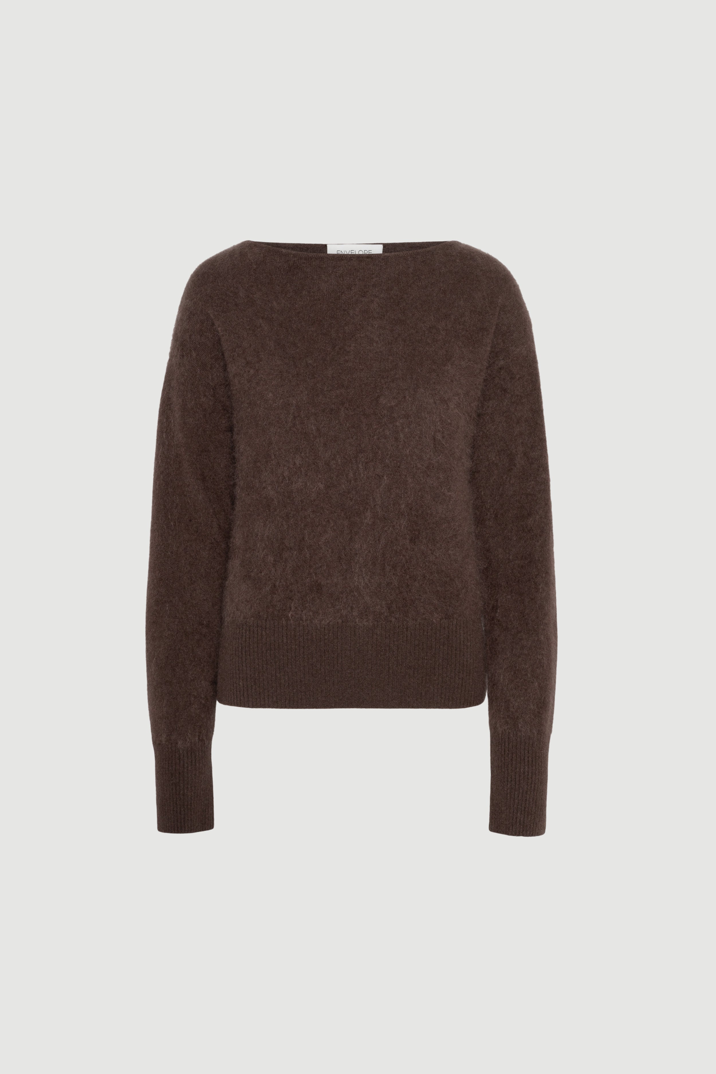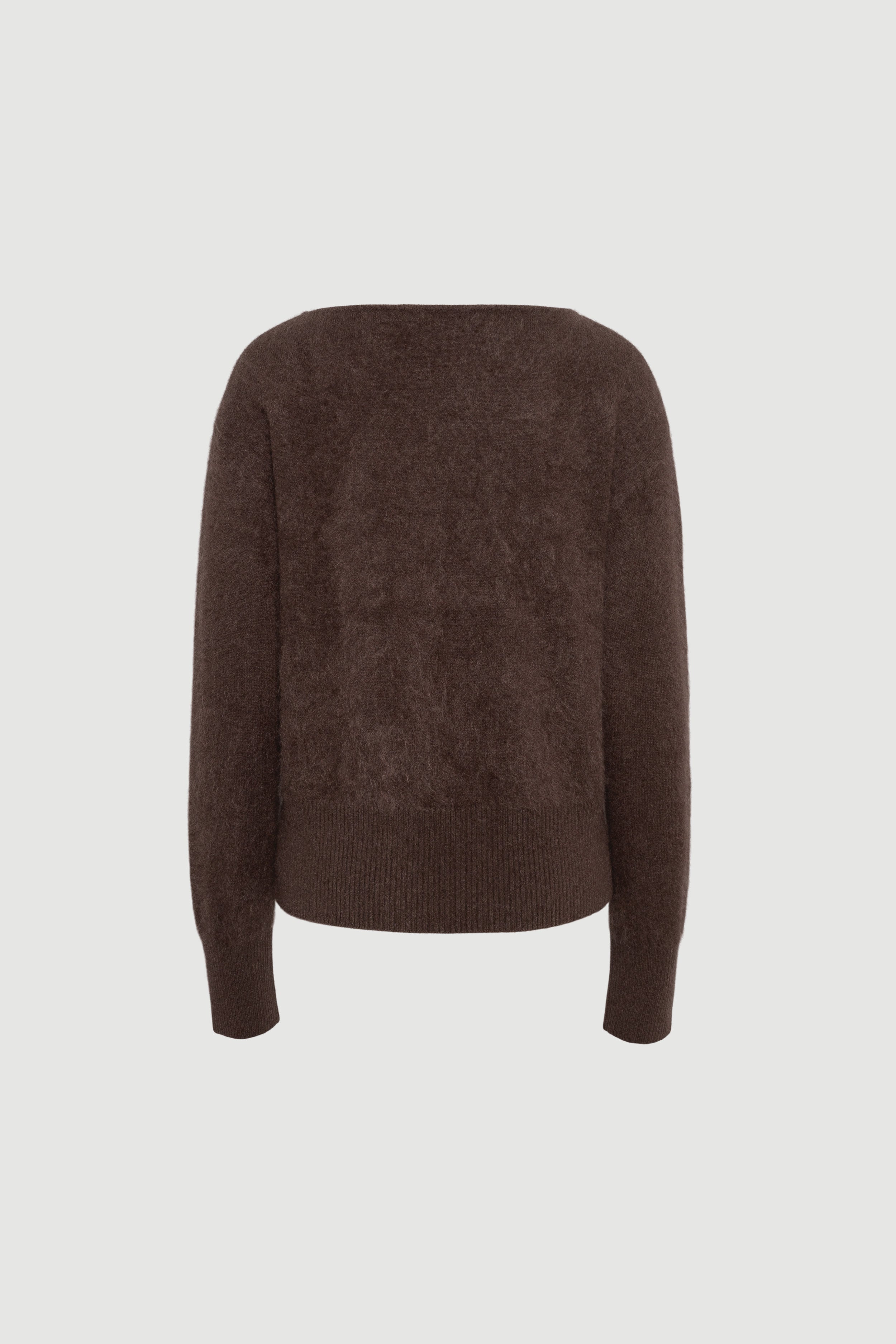 Discover the Cloud knit, the ultimate in softness. Crafted from luxurious cashmere, it features a cozy, fuzzy texture and an elegant boat neckline. Ribbed sleeves add subtle structure, making it perfect for layering and ideal for year-round wear.