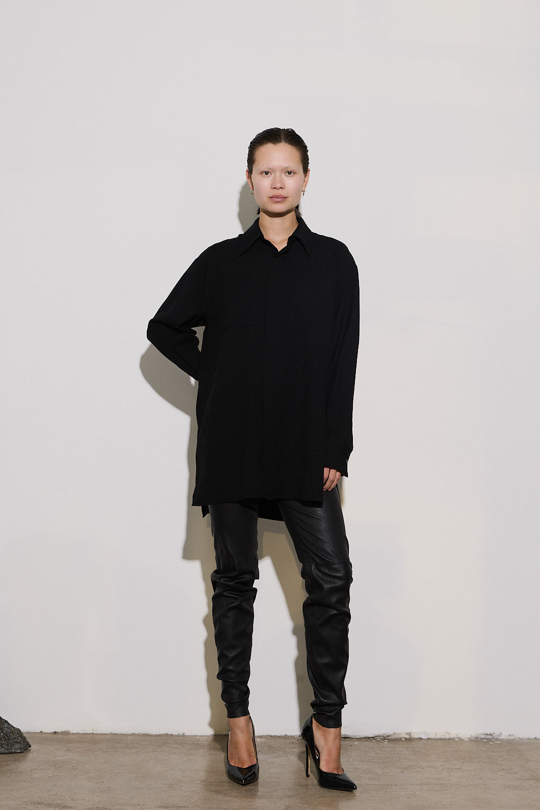 The Desert shirt is crafted from 100% wool, offering versatility and style. Wear it as a more fitted shirt or size up to use as a sleek overshirt. Its hidden buttons and refined collar create a sophisticated, elegant look for any occasion.
