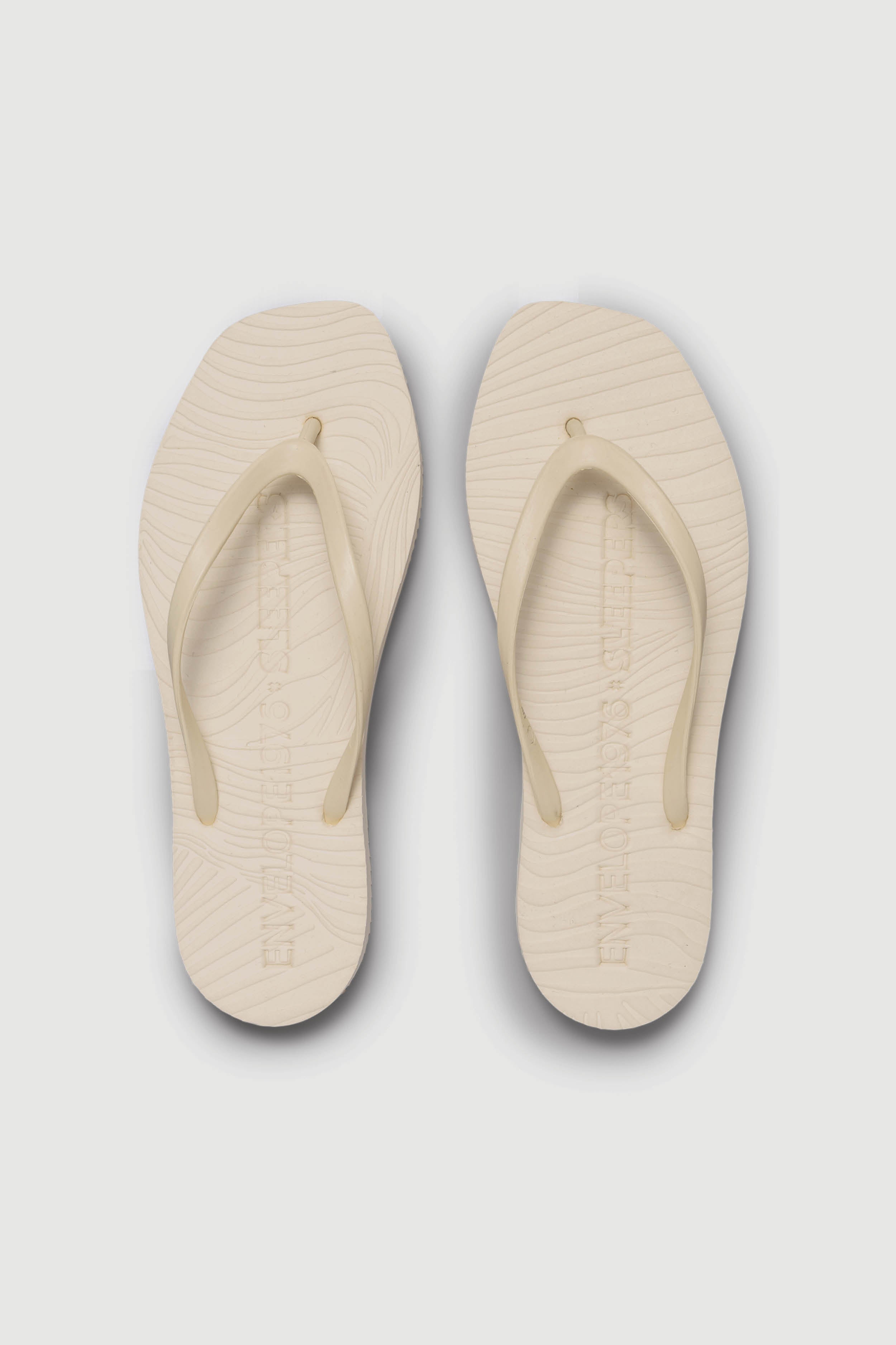 Envelope1976 x Sleepers flip-flops are made from FSC-certified natural rubber, offering soft and comfortable soles for everyday wear. The solid styles are crafted from 100% natural rubber, combining durability with a minimal, easy look.