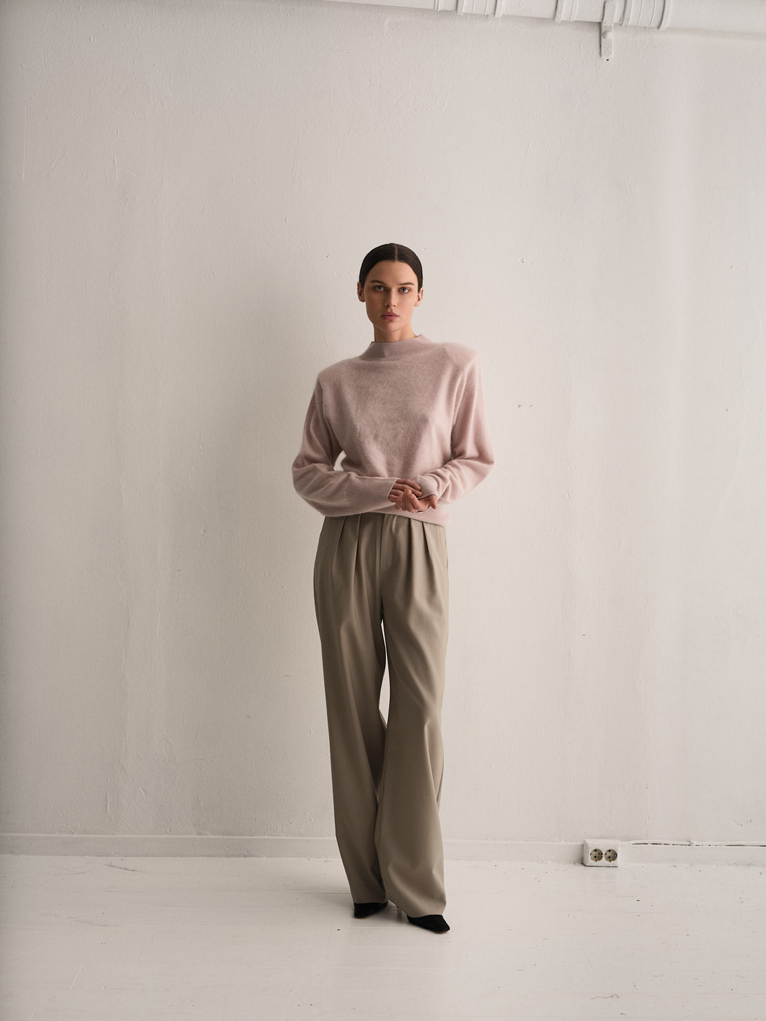 The Sky knit is a cozy sweater designed for the autumn season. Crafted in a soft pink hue, it features long sleeves, ribbed details at the cuffs, neckline, and hem, and a soft feel against the skin. A versatile piece that brings both comfort and warmth to your everyday wardrobe.