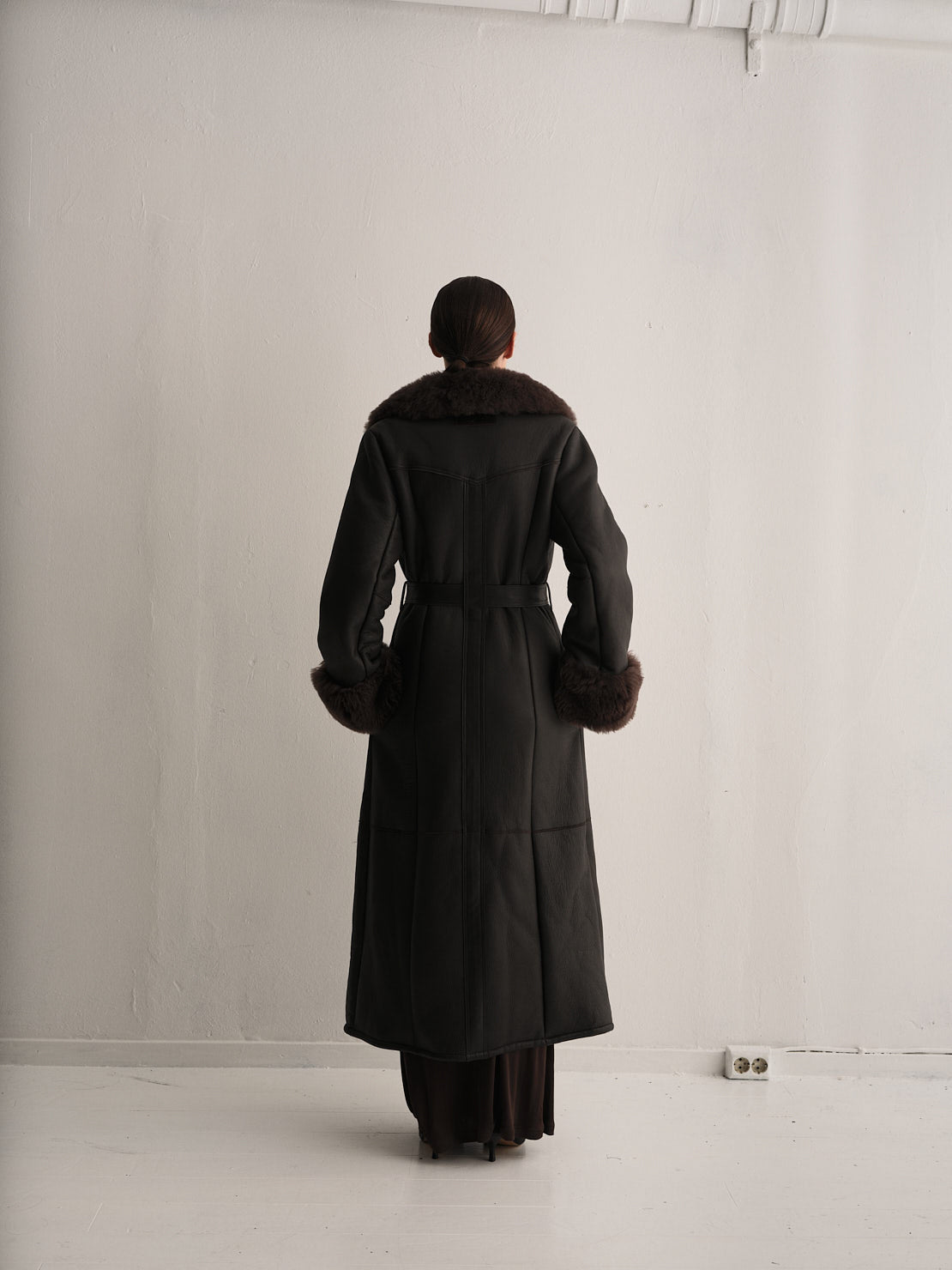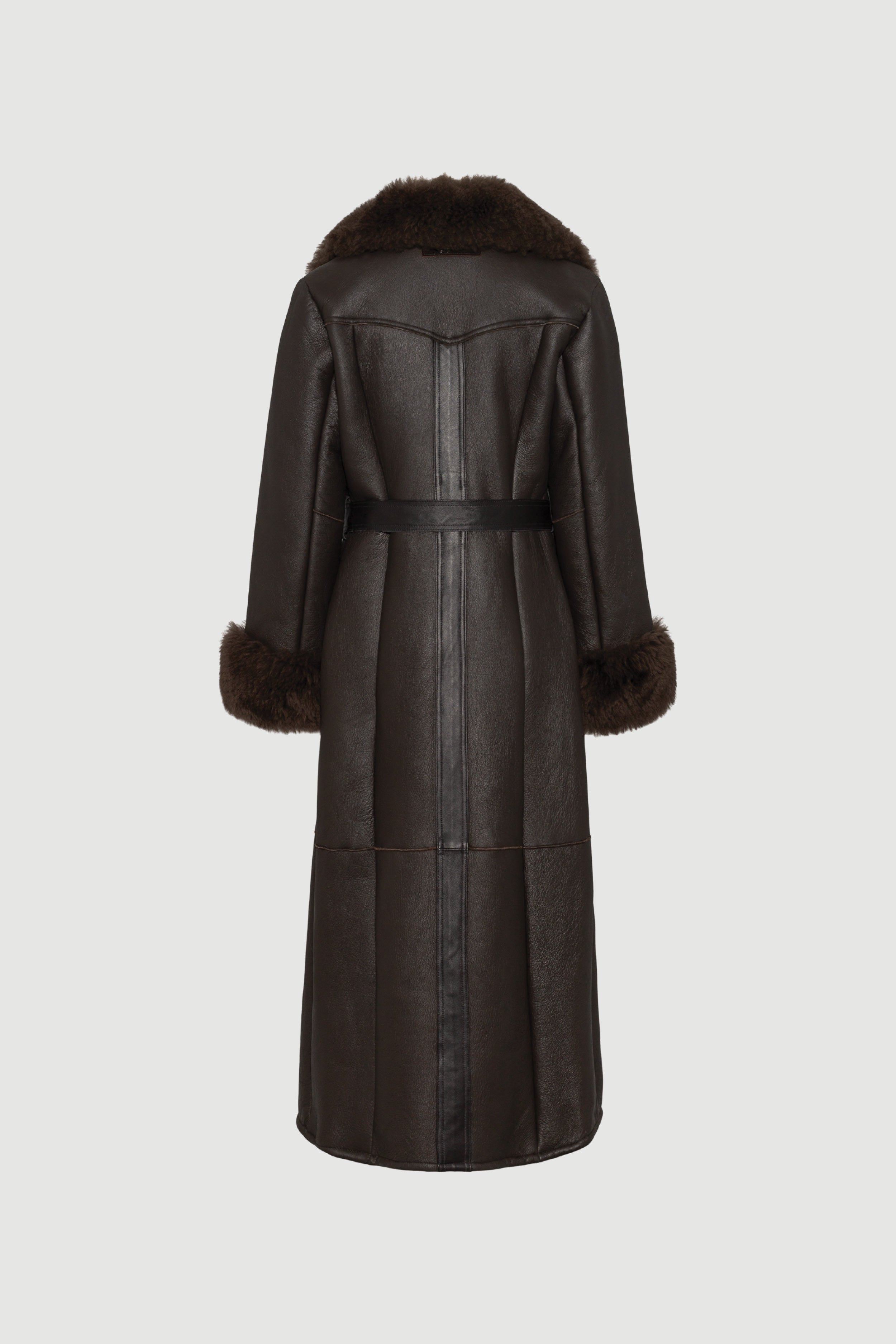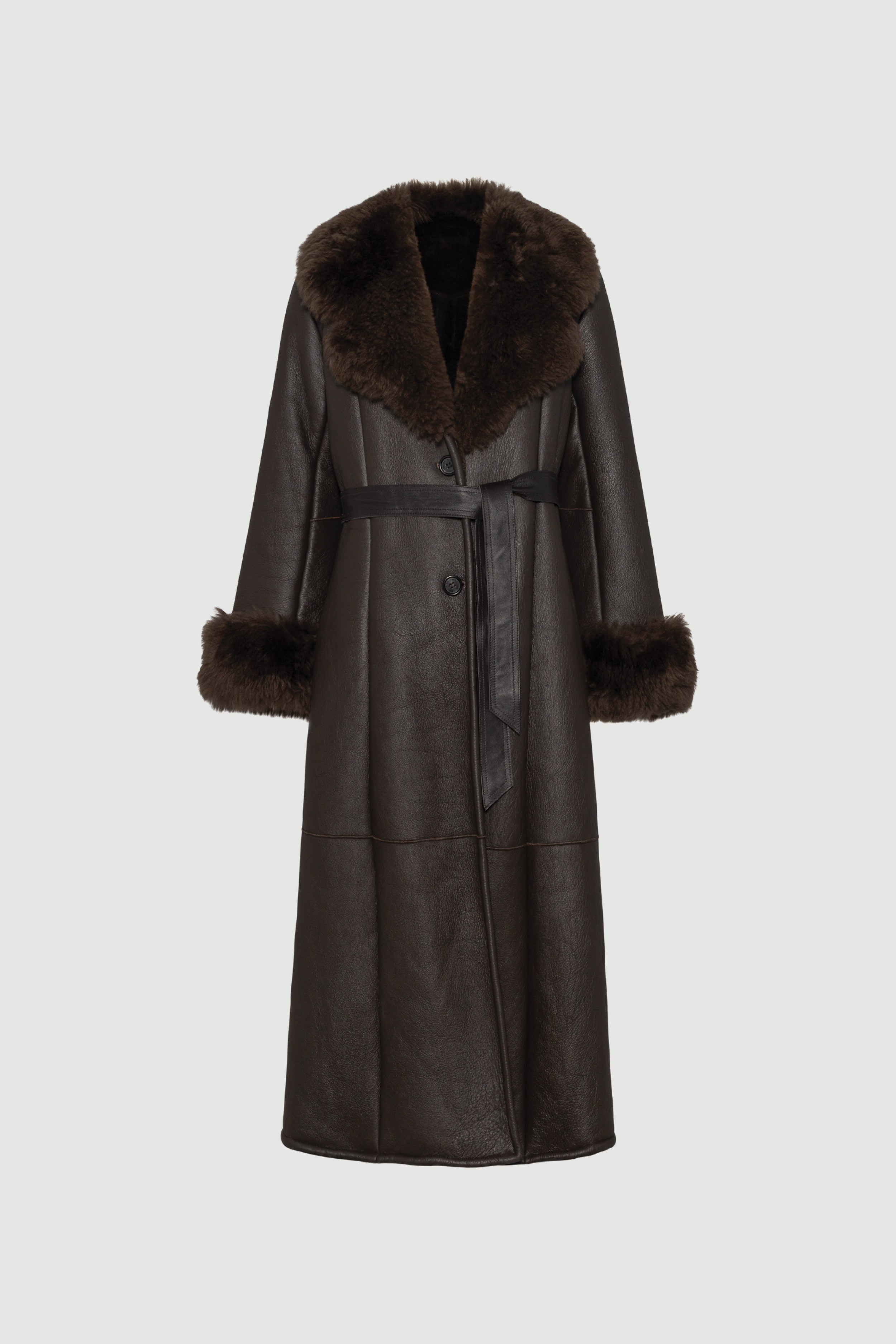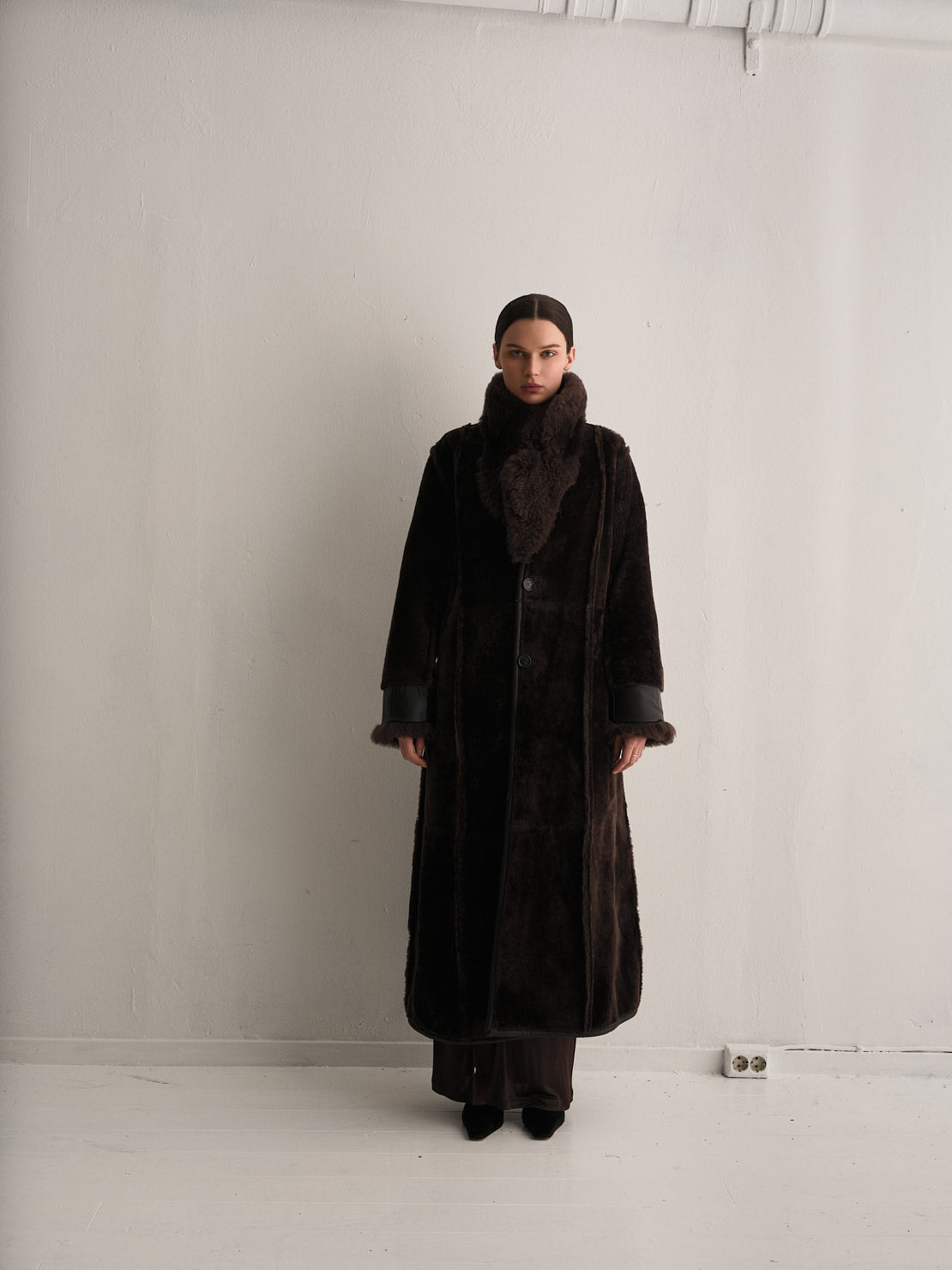 Introducing the Woodstock coat III, a refined evolution of the classic favorite. Designed with an extended length for timeless elegance, this reversible piece lets you switch effortlessly between smooth leather and soft shearling. Crafted from lamb shearling, it features straight sleeves, two pockets, and button closures for a clean finish. A versatile statement coat that balances warmth and modern sophistication.